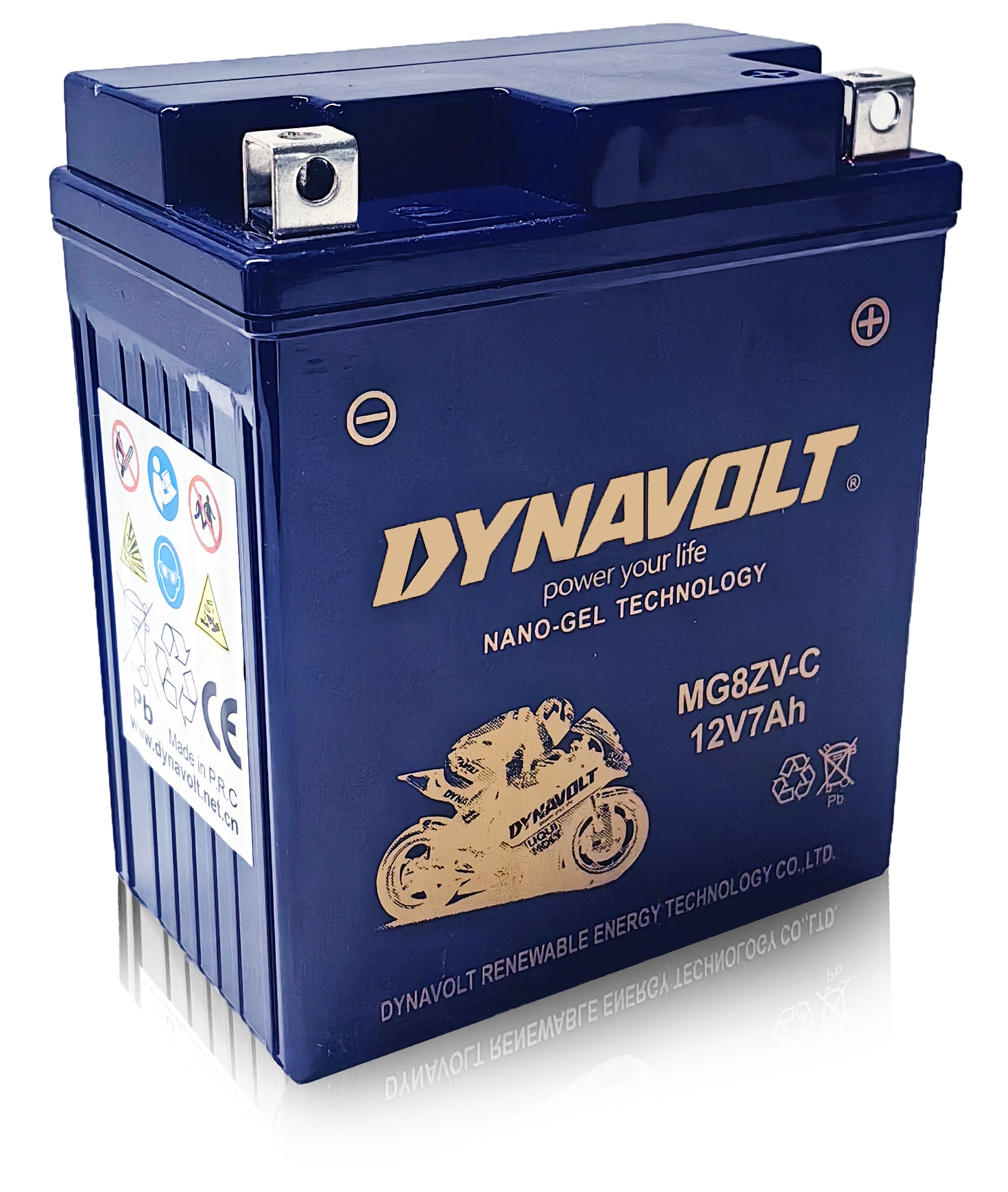 Dynavolt MG8ZV-C is a replacement for YTZ8V. Supplied filled and charged, ready to fit, and using Dynavolt's unique Nano Gel electrolyte. This Gel battery can be mounted in any orientation and delivers higher cranking performance than other manufacturers' equivalents.