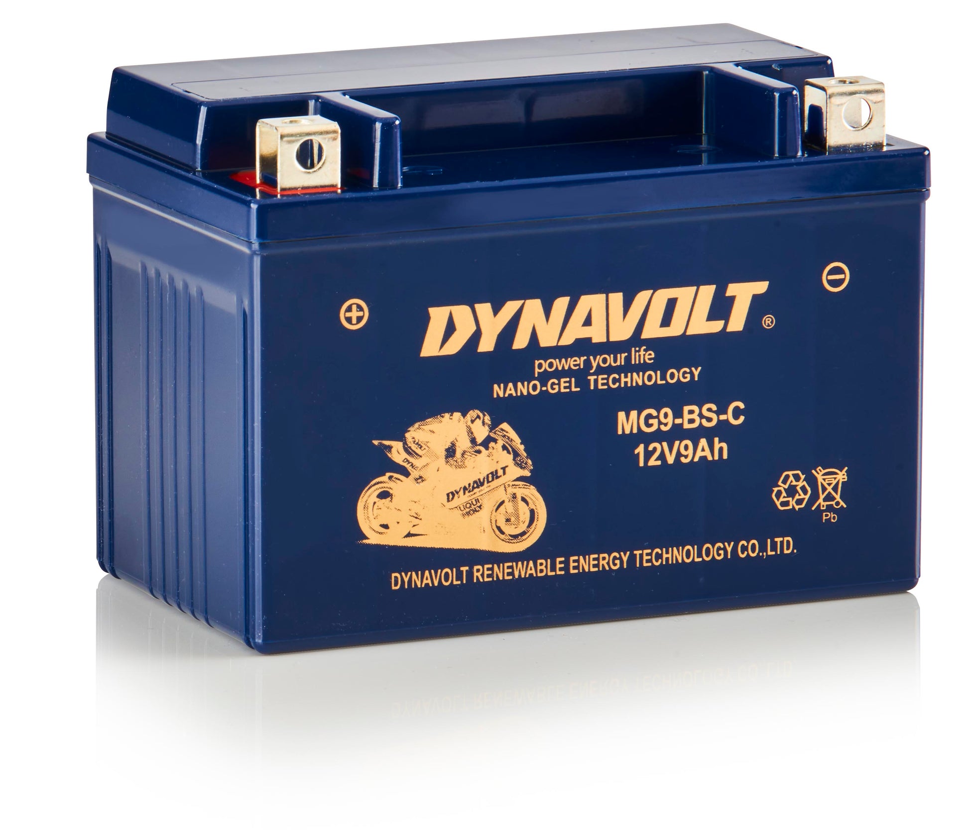 Dynavolt MG9-BS-C is an upgrade and replacement for YTX9 or YTX9-BS. Supplied filled and charged, ready to fit, and using Dynavolt's unique Nano Gel electrolyte. This Gel battery can be mounted in any orientation and delivers higher cranking performance than other manufacturers' equivalents.